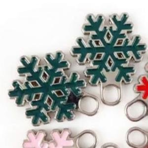 Highquality metal zipper pullers shaped like carved snowflakes, ideal for jackets, handbags, bracelets, and other accessories. Made from durable zinc alloy with plating/painting finish. Ecofriendly, nickelfree, and customizable in size and color. OEM and free design services available.