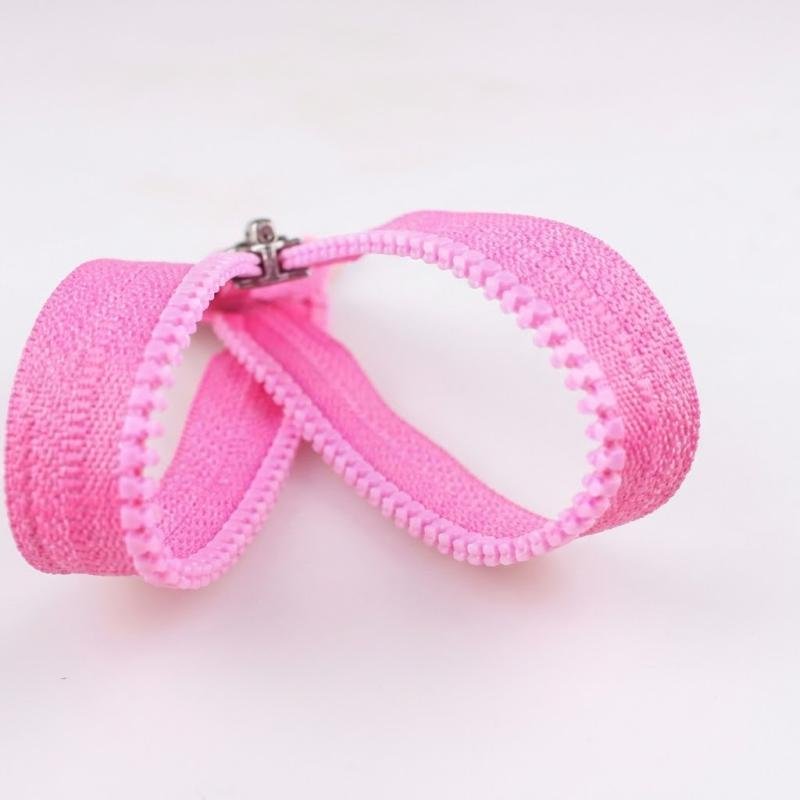This #8 plastic zipper features colorful teeth with an auto lock slider for secure fastening. Made from durable nylon plastic, it is nickel‑free, eco‑friendly, and washable. Designed for bags, garments, shoes, and home textiles, it is customizable in size to meet diverse fashion and commercial applications.