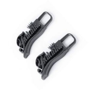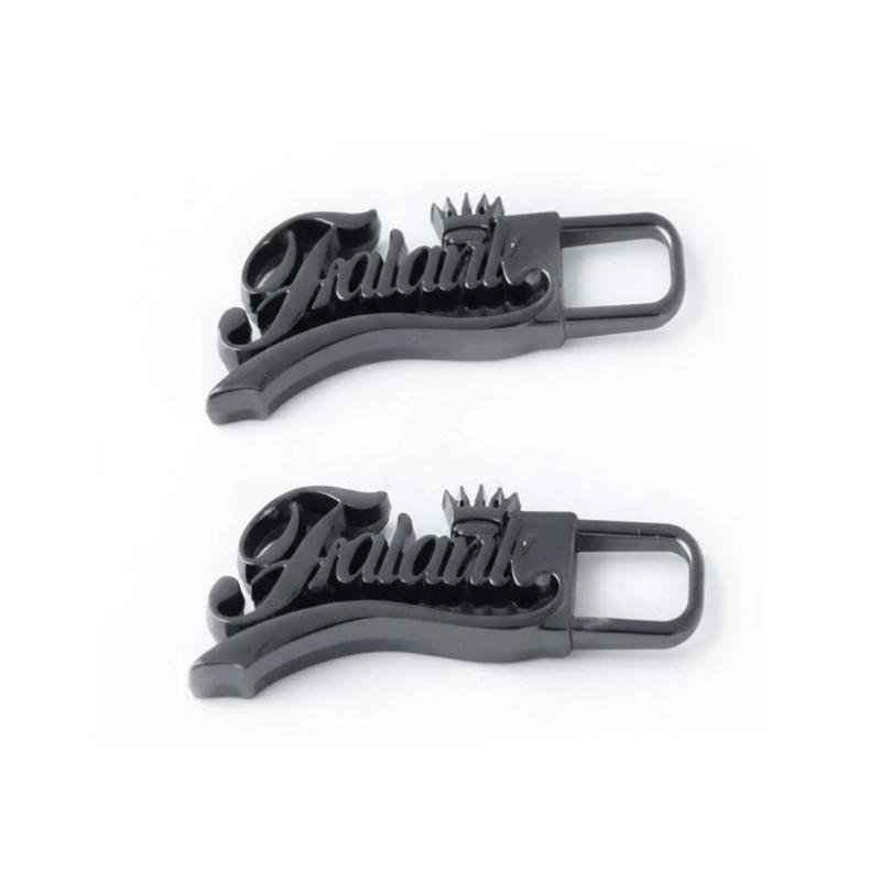 Highquality metal zipper pullers featuring shiny black letters logo design. Made from durable zinc alloy with plating finish. Perfect for jackets, handbags, leather clothes, and other garments. Ecofriendly, nickelfree, and fully customizable. OEM and free design services available.