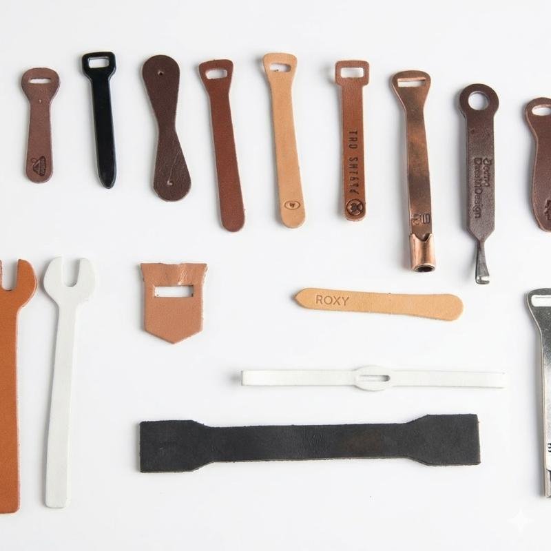 This leather zipper puller is designed for various sliders with cutting and embossing techniques. Featuring a non‑lock design, it is nickel‑free, fashionable, and customizable in size. Suitable for bags, garments, and accessories, it combines durability with stylish appeal for fashion and commercial applications.