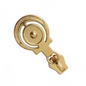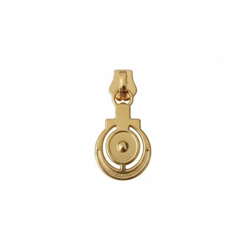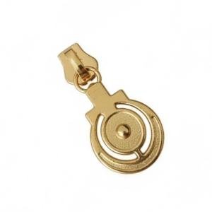 This durable zipper puller and slider is crafted from zinc alloy metal with a light gold finish. Designed for bags, garments, shoes, and other fashion accessories, it combines decorative appeal with reliable functionality, making it suitable for both commercial and personal use.