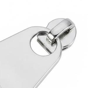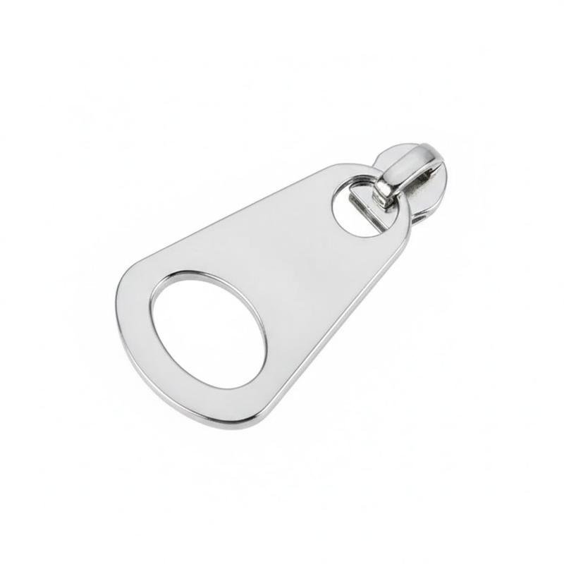 Metal zipper puller slider designed with a durable and simple structure for handbag accessory hardware applications.