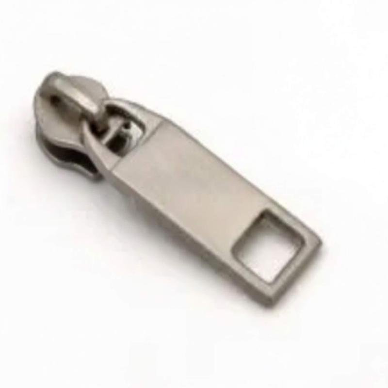 Nickelfinished metal zipper slider made from durable zinc alloy, designed for smooth performance and reliable handbag hardware.