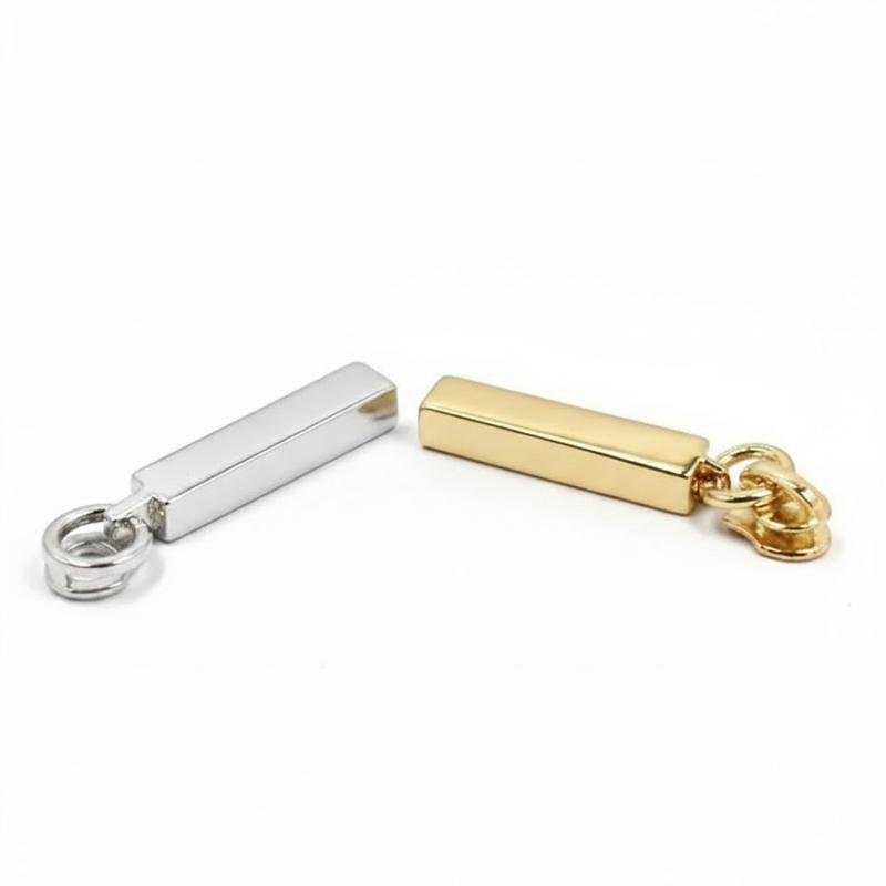 Rectangle metal zipper puller designed with a clean finish, suitable for handbag and accessory hardware applications.