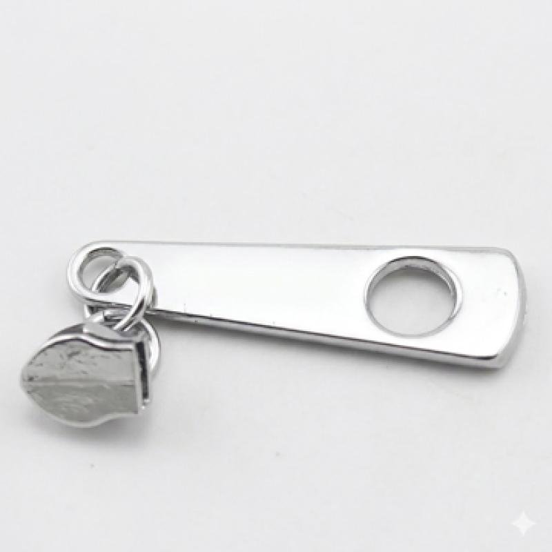 High-quality fashion metal zipper slider pull made from durable zinc alloy with rust-free plating options. Ideal for garments, bags, and accessories with support for custom logo and name designs.