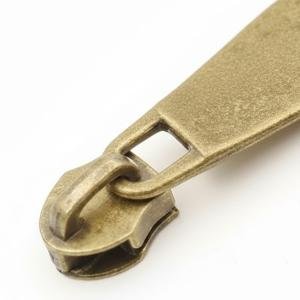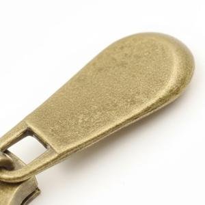 This zipper puller slider is crafted from durable zinc alloy with an antique plated finish. Featuring a non‑lock design, it ensures smooth functionality for garments, bags, and accessories. Nickel‑free and washable, it combines durability with vintage appeal, making it a versatile choice for fashion applications.